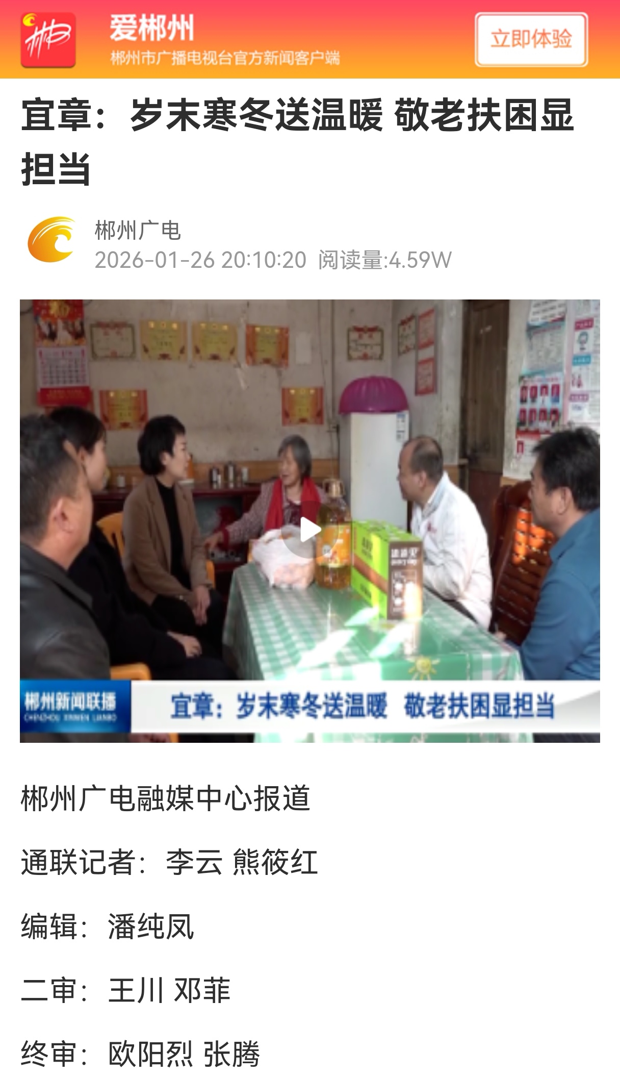 宜章:岁末寒冬送温暖,敬老扶困显担当
