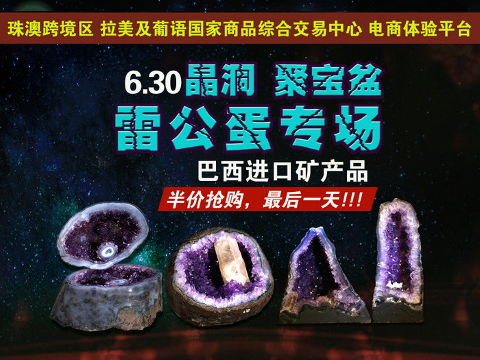 【进口矿产品返税大抢购】 6.30晶洞、聚宝盆、雷公蛋矿区专场,最后一天半价疯抢