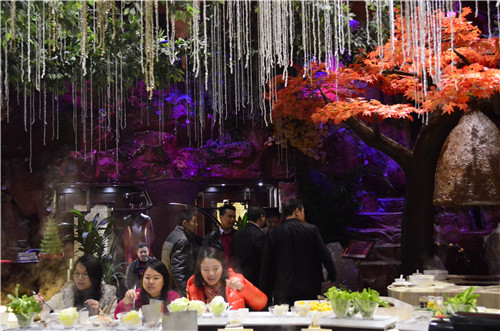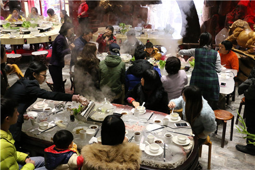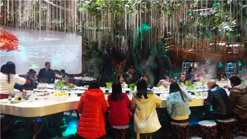 虽然今天的天气很冷,但水晶养生餐厅的温度却没有被打扰,依然热火朝天,门庭若市。热气腾腾的火锅冒出香浓的青烟,水晶在灯光照射下耀眼夺目,诱人的美食散发出阵阵沁人心脾的香气,宾客在一片片欢声笑语中品尝着着令人欲罢不能的美味。
