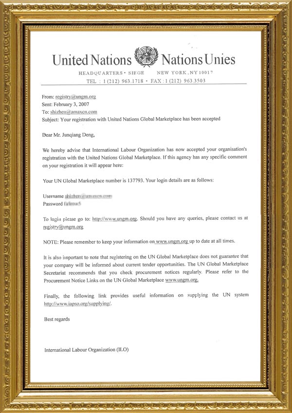 联合国注册供应商所在组织专属商号