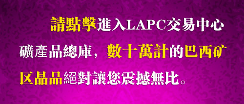 請記住:以上只是成功的案例分析,接著請盡情地投入到「送時代」的淘晶浪潮中……! 水精之戀集團作為澳門企業在葡語國家巴西唯一的水晶礦產品供應商,在此聲明:祗要您是狂熱的天然水晶愛好者,LAPC交易中心就一定會做到先捨後得、先虧后賺!