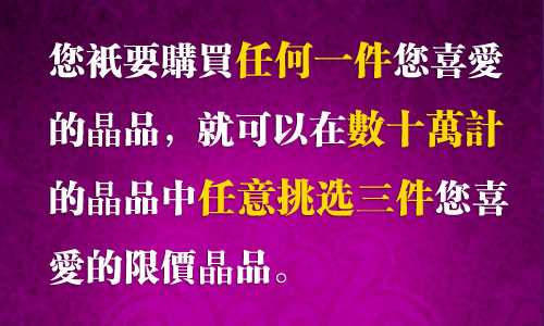 您只要看中并購買此件產品都可在數十萬件礦區直供產品中免費選擇另三件總價值與您購買的產品價值相當的產品!