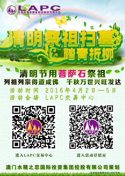 为将「送时代」进行到底,清明节专题活动期间,所有参与活动的晶品均买1送1、买1送3、买1送10……甚至买1送100,LAPC竭诚祝您尽孝心。