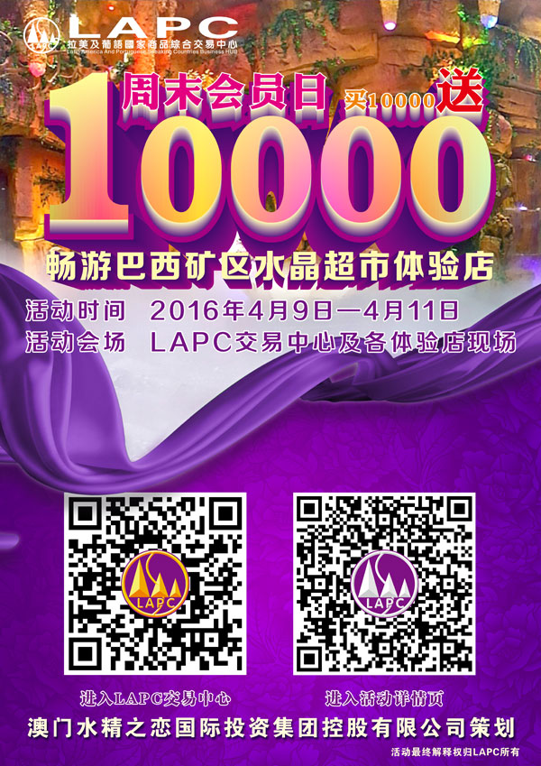 温馨提醒:水精宫殿主题馆不参与本次周末会员日,但是各水晶超市可以无限制来此调货。