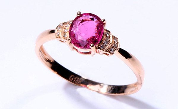 给妻子 / 18K玫瑰金镶红碧玺戒指 / 旺夫
