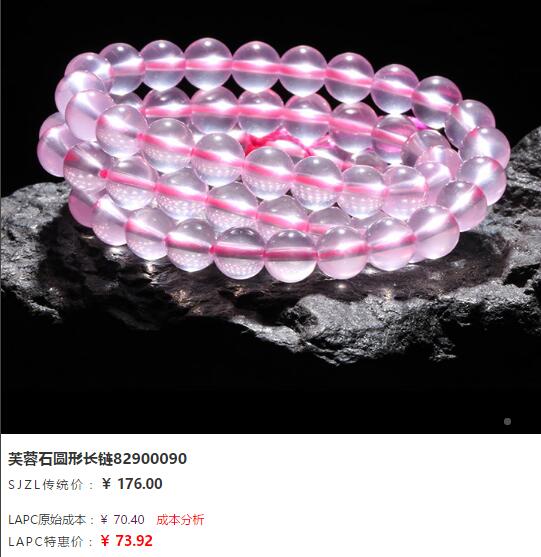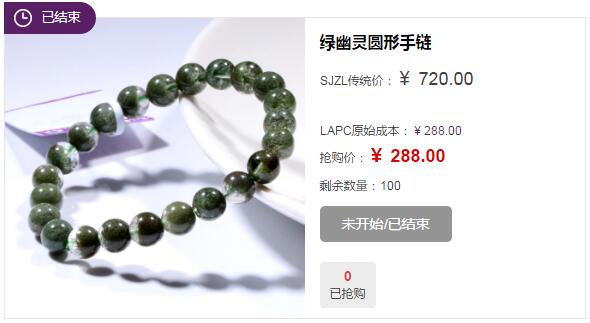 ①“矿区批发半价秒杀”,此栏目以1000元以下小尺寸手链为主,价格为LAPC原始成本半价秒杀,需3件以上成团销售。