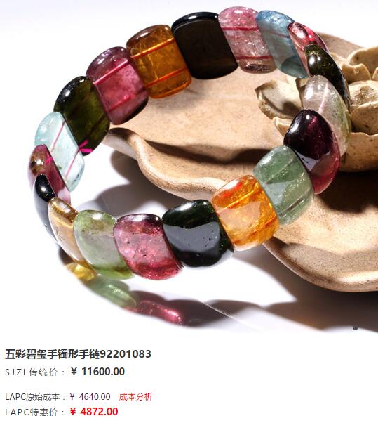 示例,上述五彩碧玺手链: