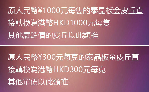為期一週的水精宮殿皮丘奇石藝術展將於25-26日(本週六和週日)正式進駐水精之戀集團澳門水精博物館,週末兩日迎來本次展覽謝幕前的最惠福利,大陸和澳門參展皮丘發售價格由人民幣直接等數值轉換為港幣: