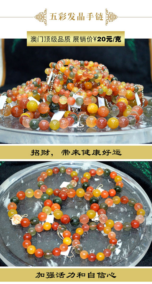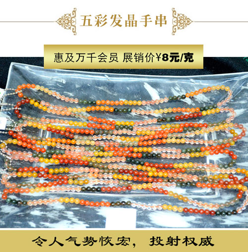 如上图:手链22颗/串,6mm珠径,20.7g,65元/克,展销价优惠幅度超过50%。