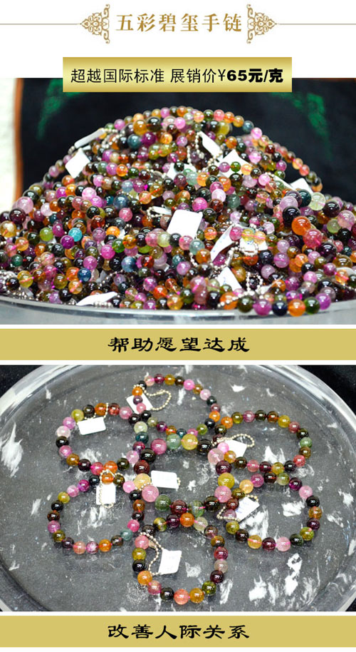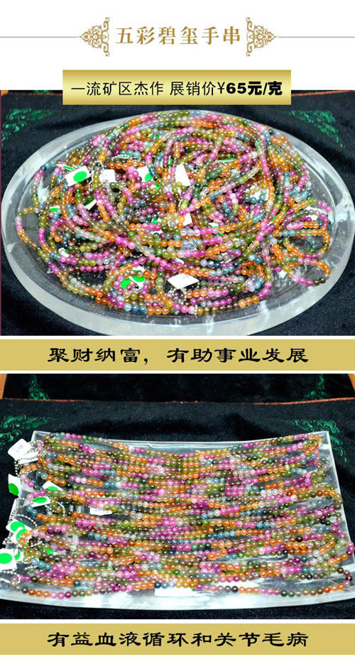 如上图:手链21颗/串,6mm珠径,25.6g,65元/克,展销价优惠幅度超过50%。