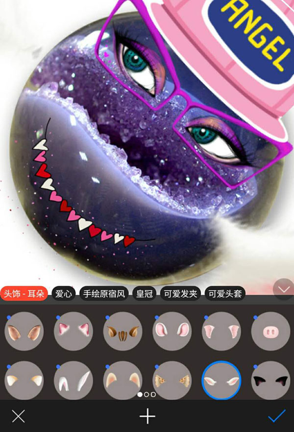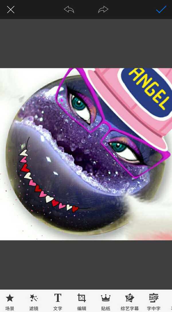 进入下一步,还可以加入更丰富的贴图,如果不需要,直接点击右上角的“√”,则您的创意已经保存在您手机上了