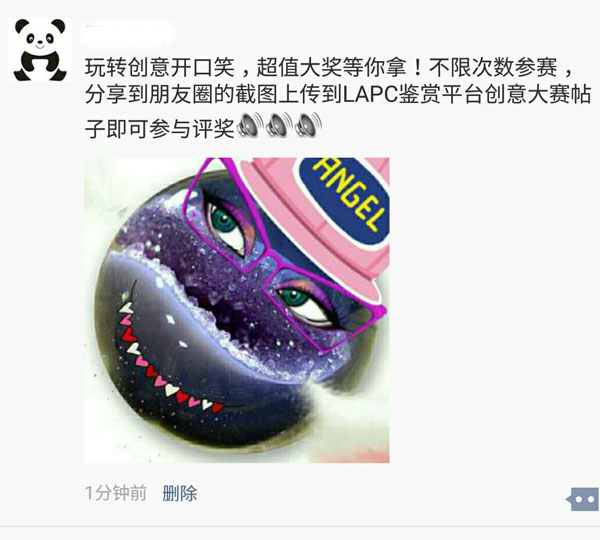 朋友圈分享示例,文字内容请随意,我们评奖是看图片的创意以及是否分享到朋友圈