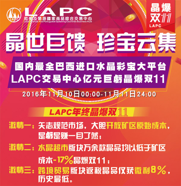 晶世巨馈 珍宝云集丨LAPC水晶超市产品均以低于矿区成本-17.2%晶爆11·11