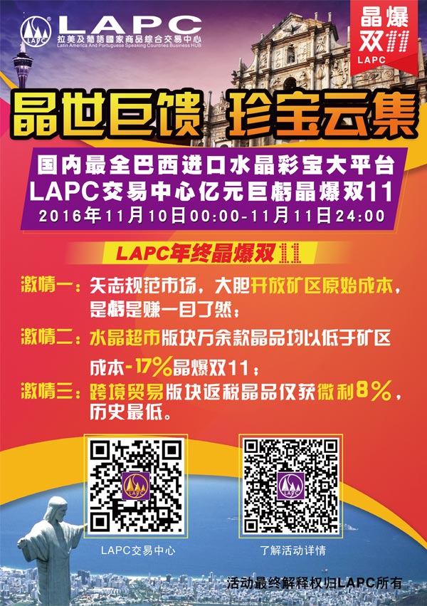 LAPC再次奇袭双11,厚积簿发,晶世巨虧;万余款巴西矿区纯正晶品云集LAPC交易中心,蓄势待发!