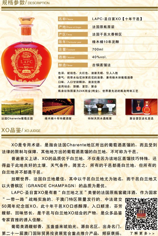 以下是关于LAPC·圣日富XO的产地及品牌故事,供君欣赏。