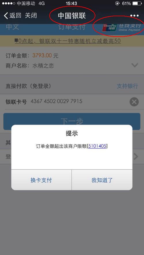 第三,使用银联支付有可能会出现订单金额超过限额,需注意的是,限额并非商城限制,而是银联限制,①