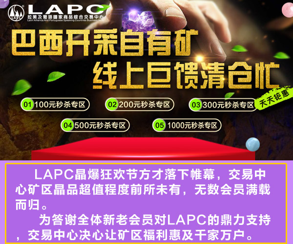 巴西开采自有矿 线上巨馈清仓忙丨LAPC交易中心巴西自有矿清仓秒杀,巨馈享不停