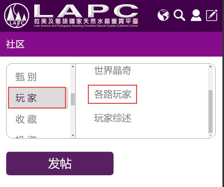 选择发帖栏目“玩家”→“各路玩家”,再点击发帖