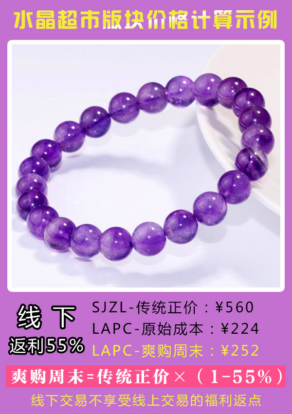 27日只要在线上购买水晶超市产品,就可实现在传统正价返利50%(相当于5折)成交额的基础上再返利15%(相当于3.5折),只要在线上购买跨境贸易产品,就可实现在传统正价返利40%(相当于6折)成交额的基础上再返利20%(相当于4折)。