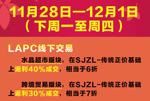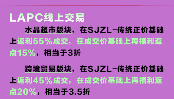 晶喜不断 乐享一周丨LAPC平台周末最高返利55%线上交易再返点20%