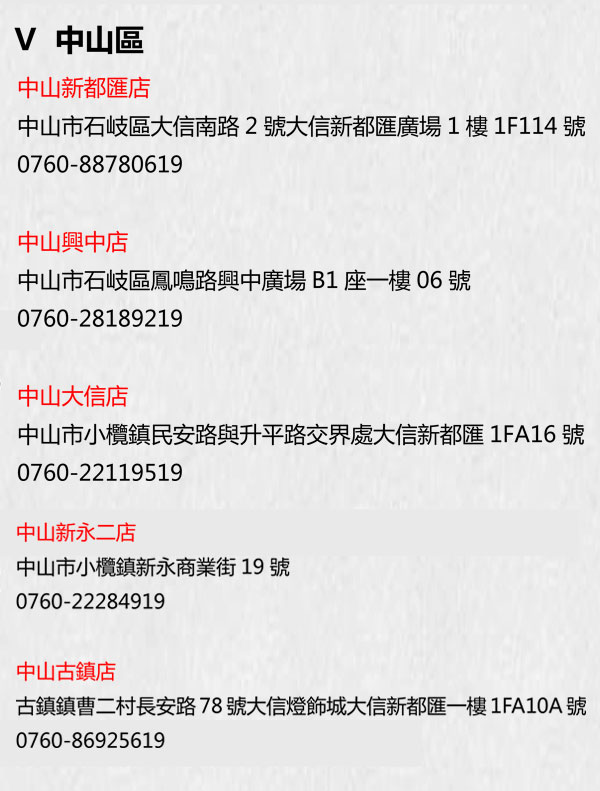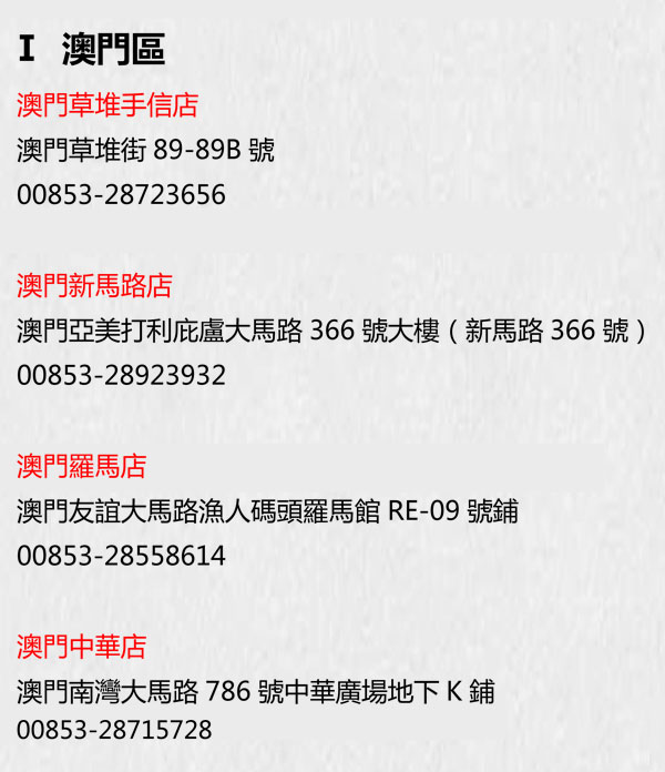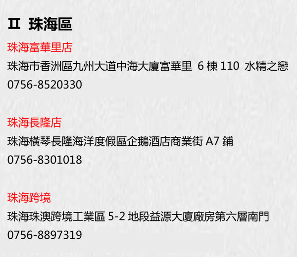 澳門水精之戀集團西澳區各礦區體驗館及友阿·澳門街名錄