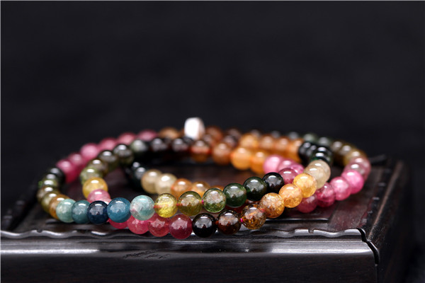 【电商体验店】五彩碧玺圆形手串90001207(5mm)
