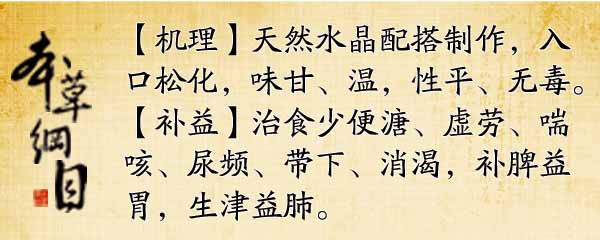 《本草纲目》中多有水晶药膳配方,现展示几种书中记载的原始配方。