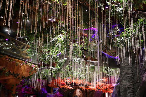 世外桃源里的花红柳绿、群山如画包围着整个水晶餐厅,小桥流水温养着轻烟袅袅,缔造人间仙境。
