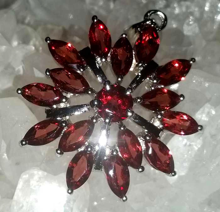 80002620-石榴石花形镶嵌挂坠