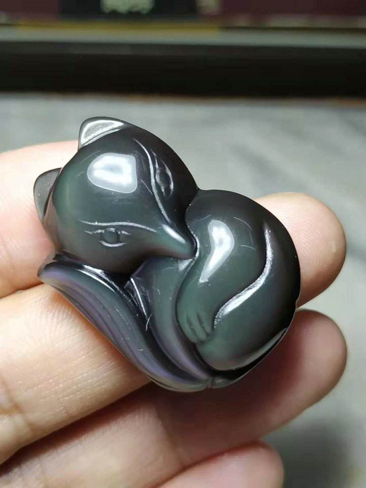 92203454-冰种黑曜石狐狸挂坠(L02HYS1BR)