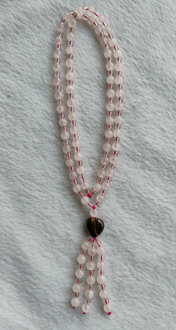 | 粉晶+发晶+心形虎晶坠毛衣链 |