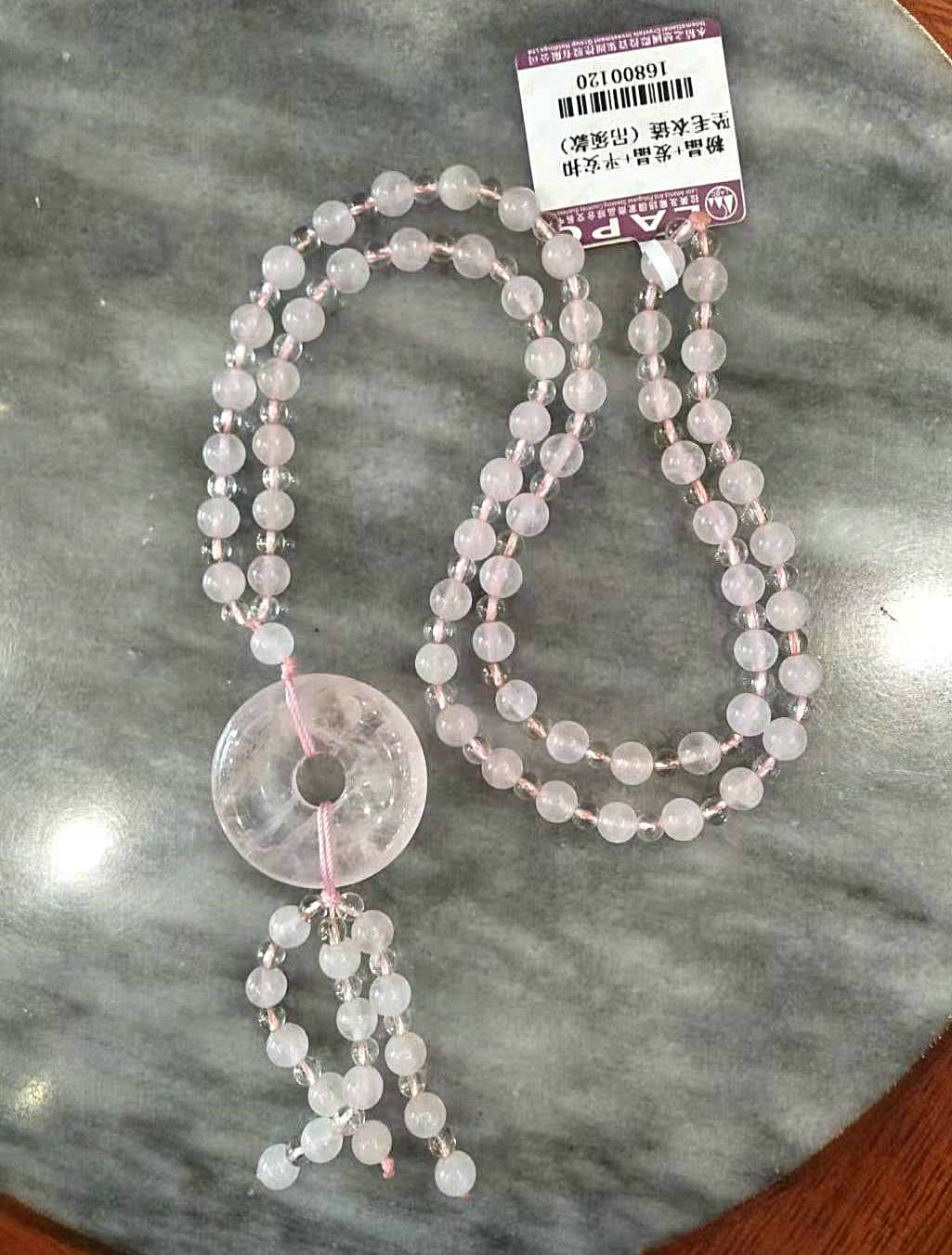16800120-粉晶+发晶+平安扣坠毛衣链(吊须款)(L03FRS1BR)