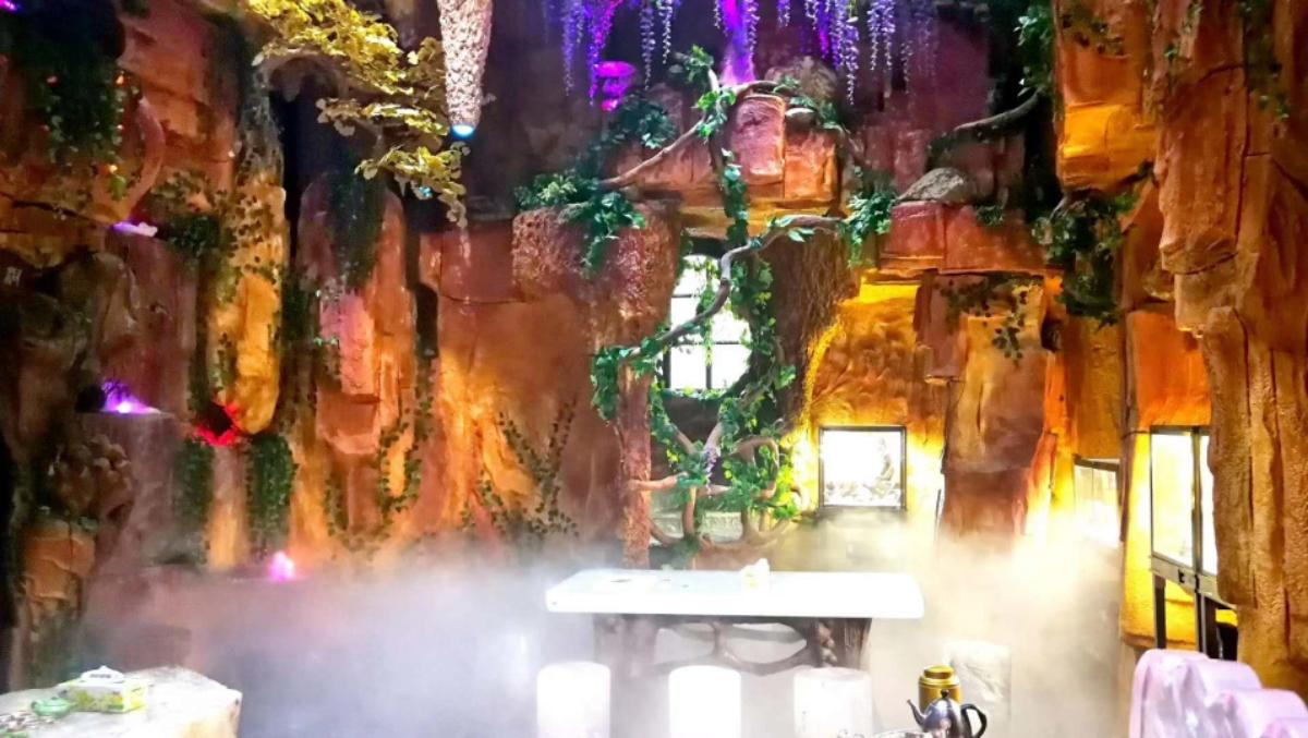 是的,这是真实的场景,但大概平均3~4个月才能看到,他必须有特殊的条件才会呈现这种先进一样的场景,必须要等到初一或者十五利用月亮的能量潮汐现象,这个时候还必须要连续下雨,然后湿气要非常的饱满,普通雾化器产生的烟雾会在5、6个小时里面聚集在一起,从而形成如仙境般的画面,这个时候人不能走进去,因为雾气有灵性,人一走进去仙气就会自动散开!