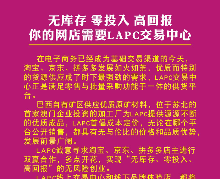 4)如果您是淘宝、京东、拼多多店主,同样可以把LAPC交易中心作为您的供货渠道。