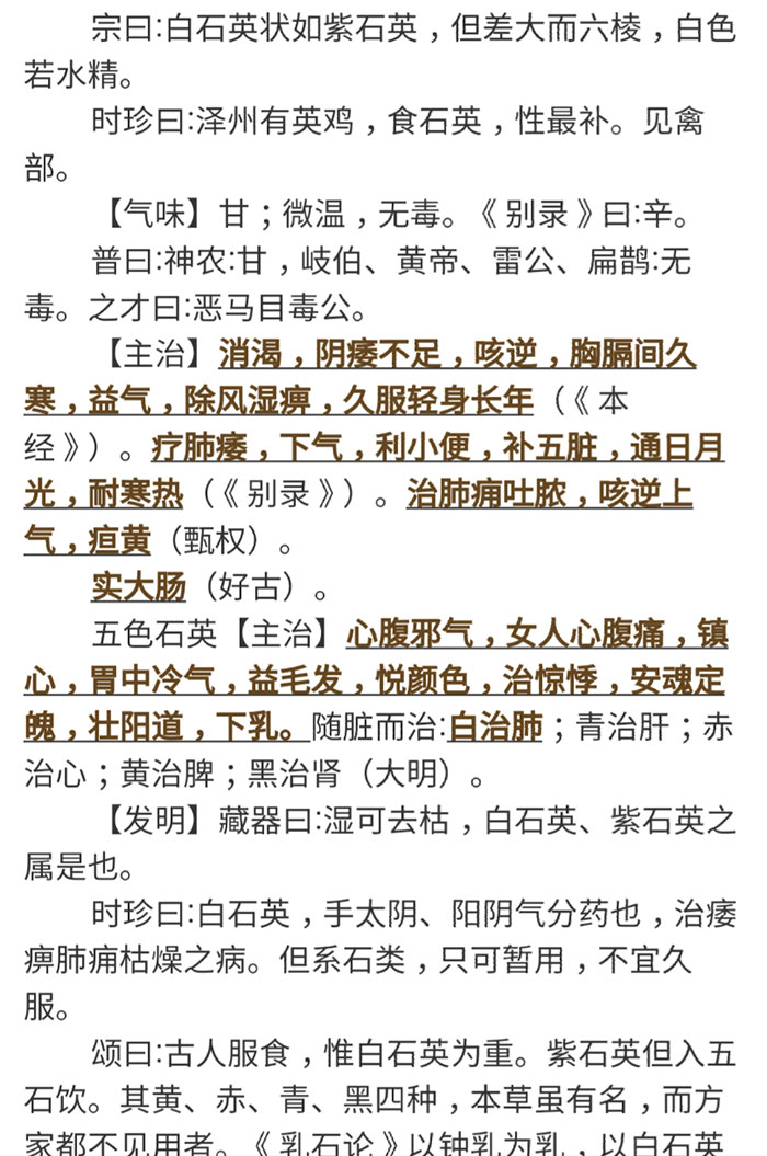 水晶,《本草纲目·金石部》称“水精、水玉、石英”。李时珍称之为:莹澈晶光,如水之精英。《神农本草经》与《岐黄医经》中也均有记载。
