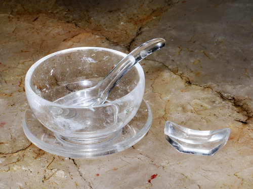 【水晶碗、汤匙、筷子架,碗φ11×7cm】