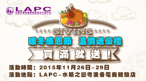 因何而感?感从何发?恩,“从因,从心”,因此,感恩需发自本心,是缘自内心的感受。感恩,让人类更文明,使社会更和谐。感恩节(Thanks giving Day)正在为世界所熟知,人们越来越乐于借此表达对上帝、对自然、对家人、对朋友……的感谢。心怀感恩,生命的每一天都瑰丽绚烂。无所谓滴水之恩抑或恩同再造,内心的感激之情总是需要一直存在的,因而LAPC将11月26日感恩节当做回馈会员的重大节日,倾全公司之力,表达发自内心深处的对会员由衷的感恩。