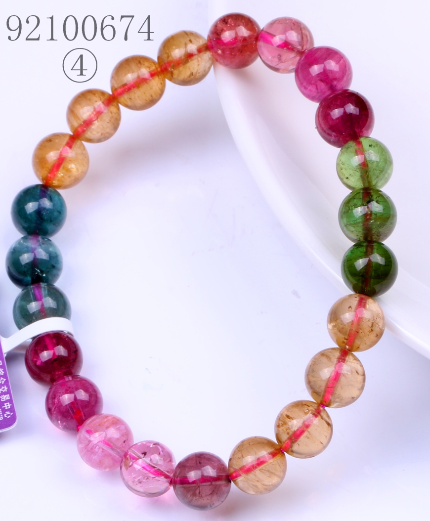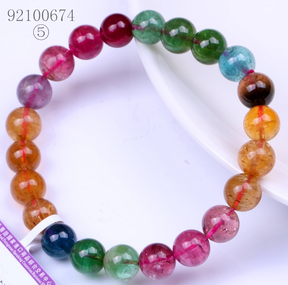 五彩碧玺圆形手链 8MM
