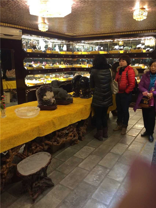 宾客们通过一顿丰盛的水晶养生餐过后鼓腹含和,纷纷到水精商行及水精宫殿观赏及选购水晶奇石。