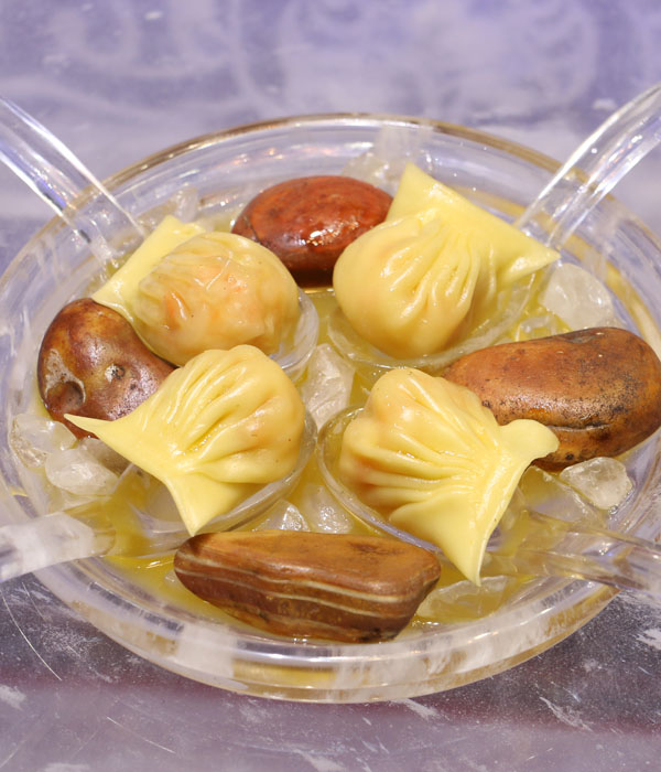 水晶养生虾饺皇经水晶原石蒸出来的虾饺,皮通透爽滑,补气、益精,具有虚劳惊悸补虚止惊功效。