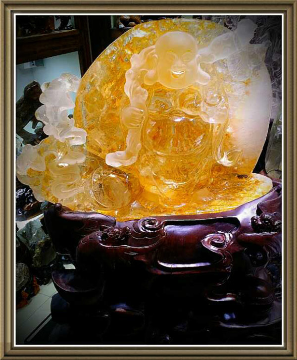 05 冰种黄水晶绿碧玺笑佛雕件