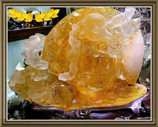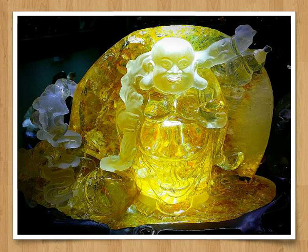 03 冰种黄胶花笑佛摆件