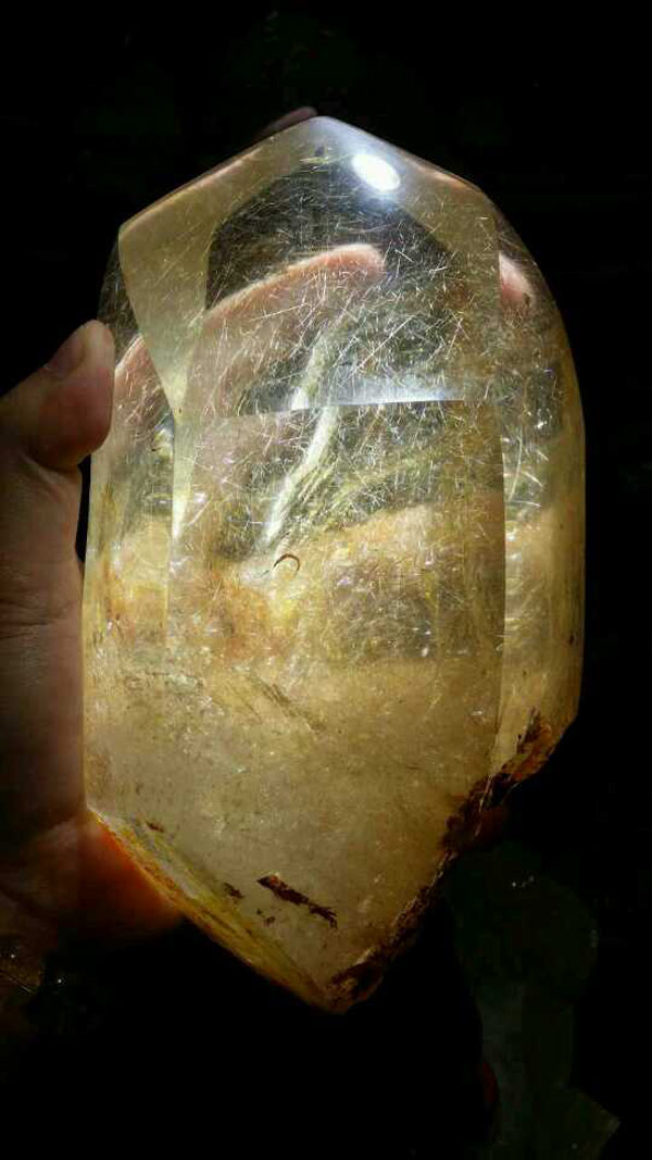 澳门水晶收藏博物馆的一件旷世瑰宝: 冰种五彩金发晶宝矿料,因为极其低调,反而无比奢华,数亿年的精髓沉淀,每一处都尽显璀璨夺目的光芒!