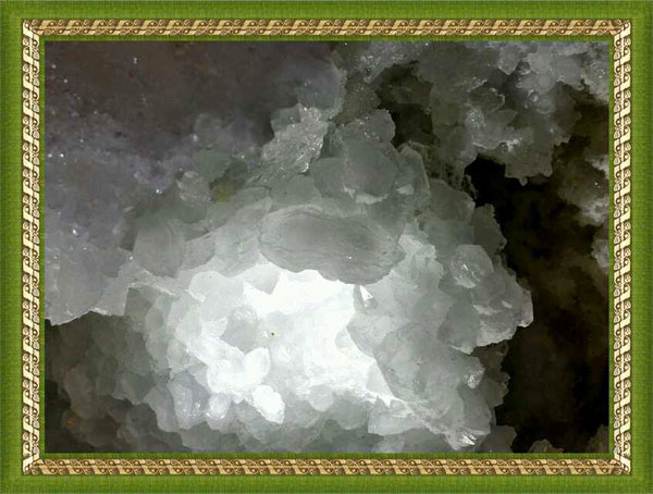 小水晶,大世界!幾千萬年前的天然變種白晶體聚寶盆切開後,竟然是一幅匪夷所思的景象,一個水晶“花生“長在裏面,透過燈光的照射,“花生米“隱隱約約的藏于殼內。大千世界無奇不有,總之不由您不信!