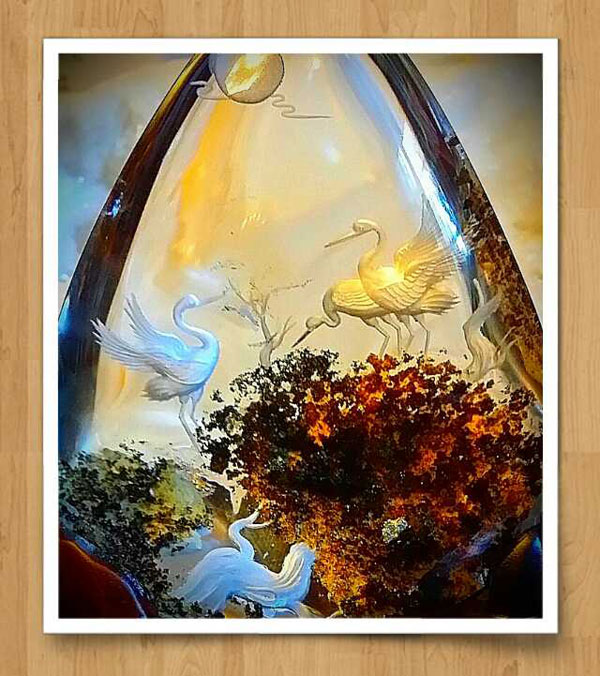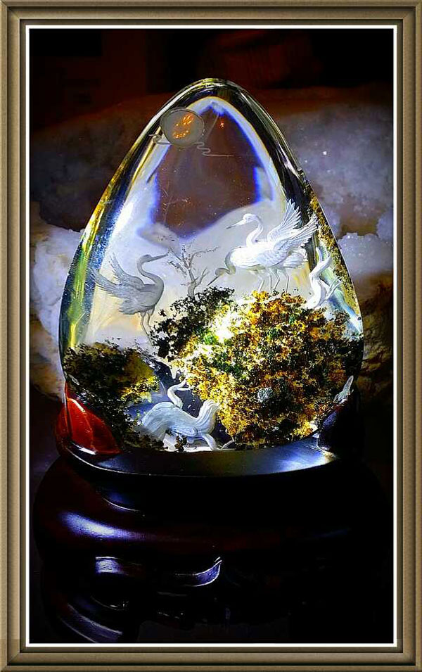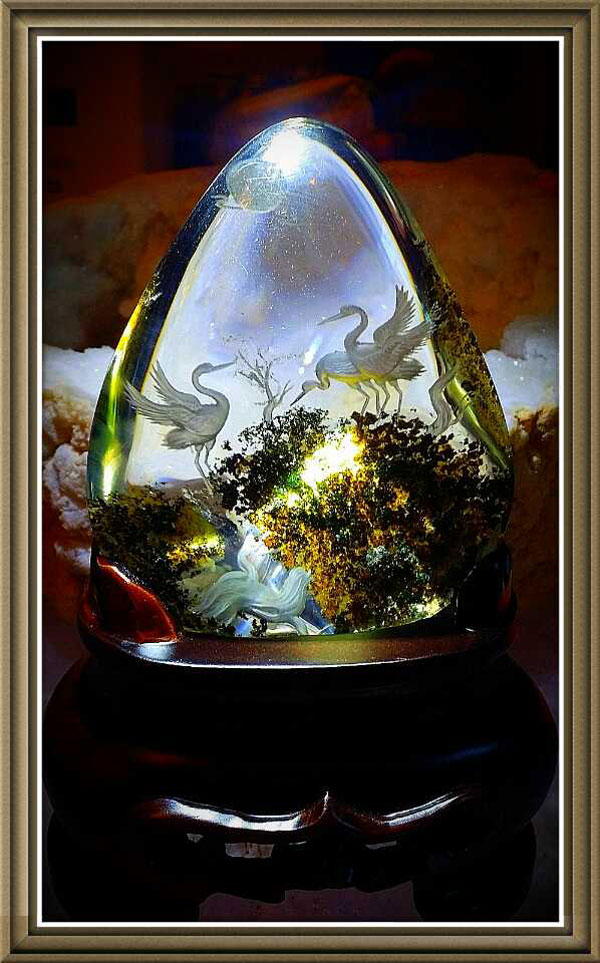 水精宮殿博物館:無价級的大型冰种花幽靈俏色水晶原礦內景奇石,裏面騰雲駕霧的金龍王實在太生動了,就像一出神话大戲,演绎了數億年的光陰!!!