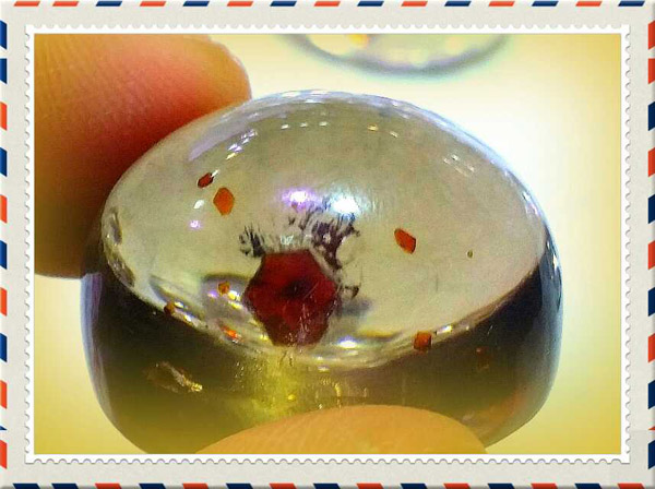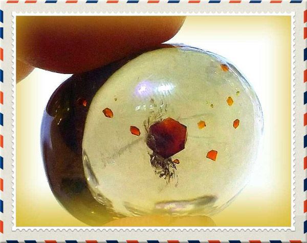 請換個角度看世界,結果會更美妙,一塊內包石榴石礦的小水晶有大乾坤,正面看是標準的紅色六邊形,側著看則瞬间變成了一顆紅"心"!大自然就是如此奇妙,今天是國慶65周年,一顆"紅心"獻給偉大的祖國,祝國家繁荣昌盛,國泰民安。