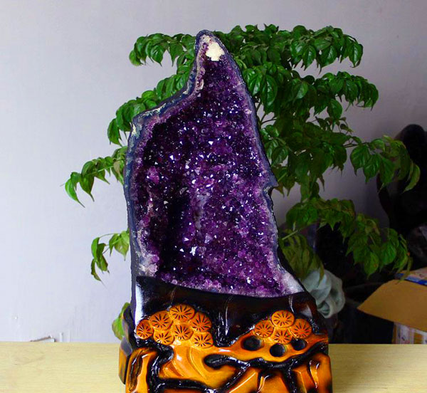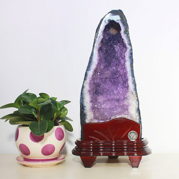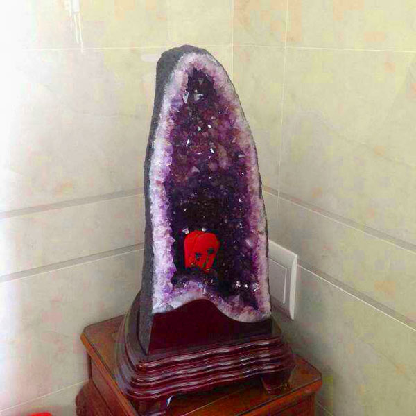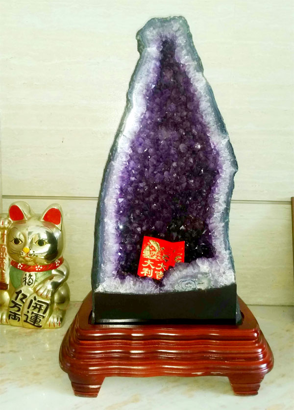 注解:安放在财位的紫晶洞,再配合招财或生财的辅助手段,效果更佳,一般会放开过光的符文、铜钱、貔貅、金蟾、元宝、红包,或旁边摆招财猫、发财树、富贵竹等。