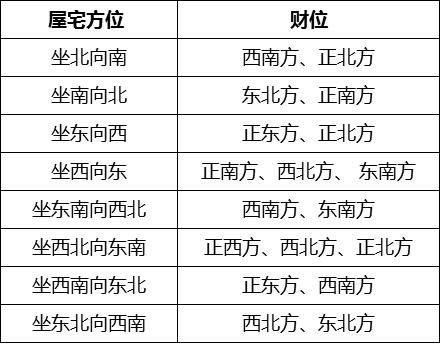 ↑屋宅方位与财位的对应关系