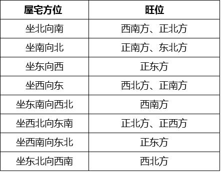 ↑屋宅方位与旺位的对应关系