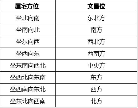 ↑屋宅方位与文昌位对应关系
